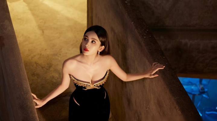 古力娜扎黑金礼裙美成暗夜缪斯, 明艳气质藏不住灵动魅力